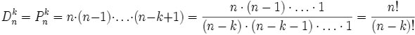Una disposizione semplice di lunghezza k di elementi di un insieme S di n oggetti, con k < n, è una presentazione ordinata di k elementi di S nella quale non si possono avere ripetizioni di uno stesso oggetto. Per avere il numero di queste configurazioni si considera che il primo componente di una tale sequenza può essere scelto in n modi diversi, il secondo in (n - 1) e così via sino al k - esimo che può essere scelto in (n - k + 1) modi diversi. Pertanto il numero di disposizioni semplici di k oggetti estratti da un insieme di n oggetti è dato dal prodotto: